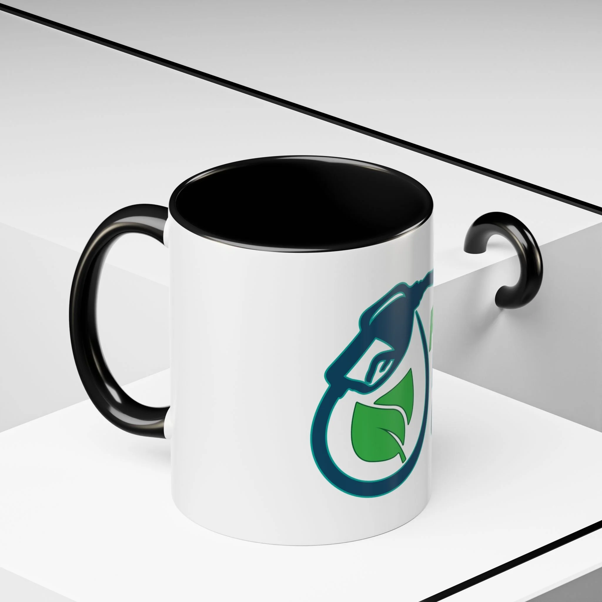 Meet your next favorite morning companion, the accented ceramic mug. This mug brings the perfect blend of style and functionality to elevate your coffee or tea ritual. Available in two generous sizes, 11oz (0.33 l) and 15oz (0.44 l), this mug offers ample space for your favorite brew. Made with white ceramic and sporting a sleek glossy finish with eye-catching contrast, this mug is a bliss both to use and to look at. The ergonomic C-shaped handle provides a comfortable grip, while the lead and BPA-free construction guarantee peace of mind with every sip.